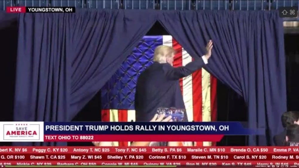No había estrellas en la bandera estadounidense el sábado en el mitin del presidente Trump en Ohio cuando entró y salió del escenario.