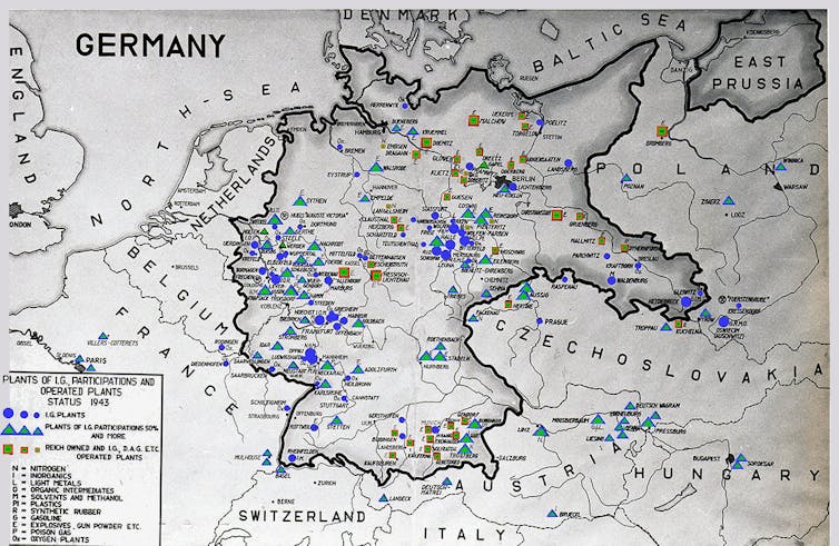 I.G. Farben estableció estrechos lazos con el partido nazi y financió gran parte de la campaña electoral que llevó a Adolf Hitler al poder, en marzo de 1933. Desde entonces, la presencia de I.G. Farben en los cuadros de decisión política del régimen no dejó de crecer, siendo calificada como “un Estado dentro del Estado alemán”. Y viceversa: la doctrina política nazi se impuso en I.G. Farben como credo corporativo.